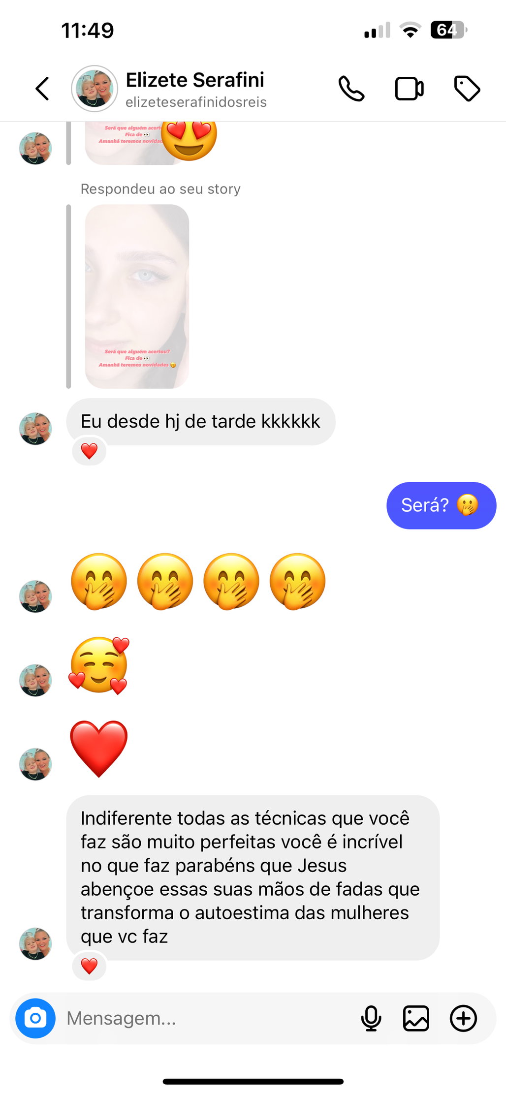 Entrei para o mundo da extensão de cílios há 6 anos e virei especialista no assunto, formada com mais de 50 certificaçoes nacionais e 20 internacionais, mais de 5000 atendimentos e dezenas de alunas formadas com 100% de exelência.